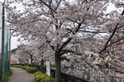 この時期の徒歩通勤は、気分爽快心晴れ晴れです。私の通勤経路には緑が多く、桜のミニスポットがあちこちに。その一つに妙生寺川の遊歩道。背のそんなに高くない桜並木があって、とても可愛らしい風景です。